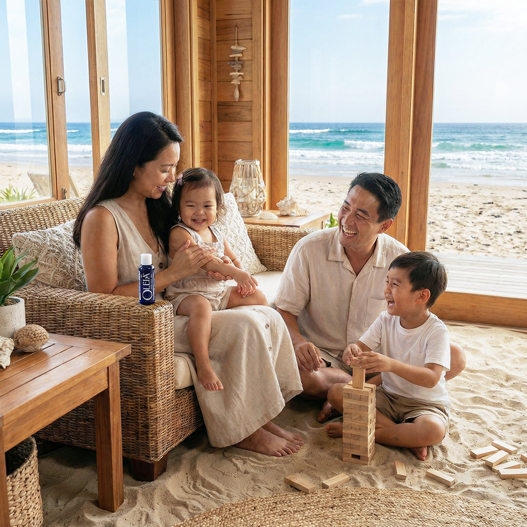 Oleia Oil is a fast-absorbing blend of pure essential oils and antioxidant-rich plant oils like pomegranate seed oil, moringa oil and olive oil, crafted by a Biochemist to comfort the body, calm the mind, and care for your skin—without chemicals.