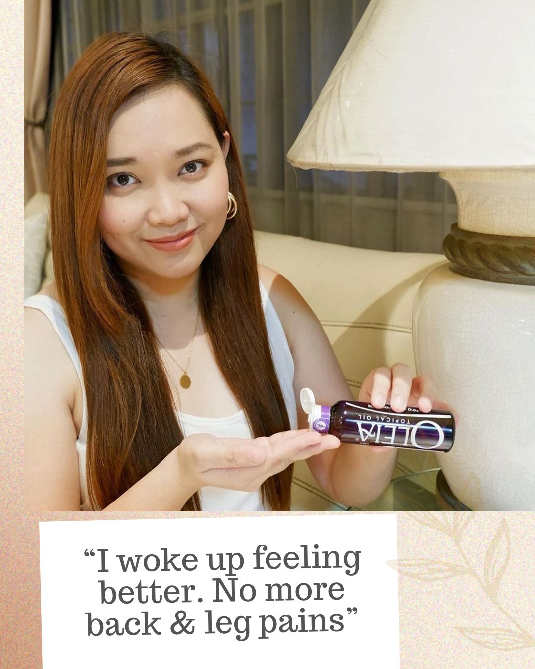 - Oleia Warm Mint Oil provides a gentle warming effect to relax stiff joints and alleviate aches.